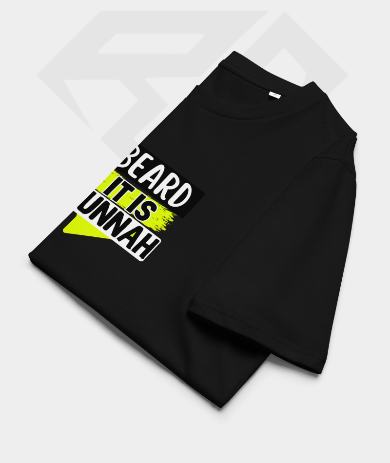 Premium half sleeve T-shirt featuring the “Beard Is Sunnah” design. Crafted from high-quality 180 GSM cotton for breathable comfort and everyday wear.
